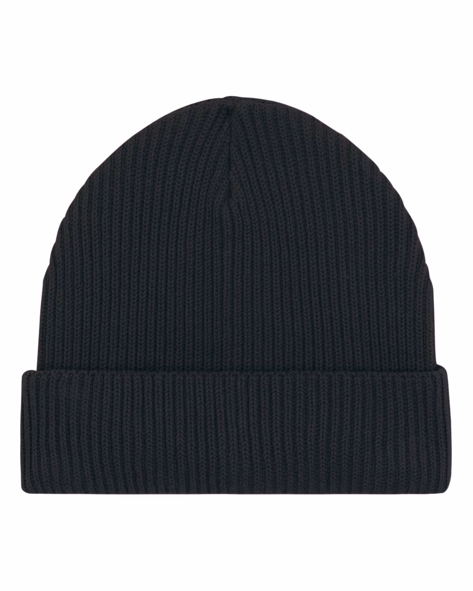 Stickad i klassisk fisherman-ribb med uppvikbar kant.