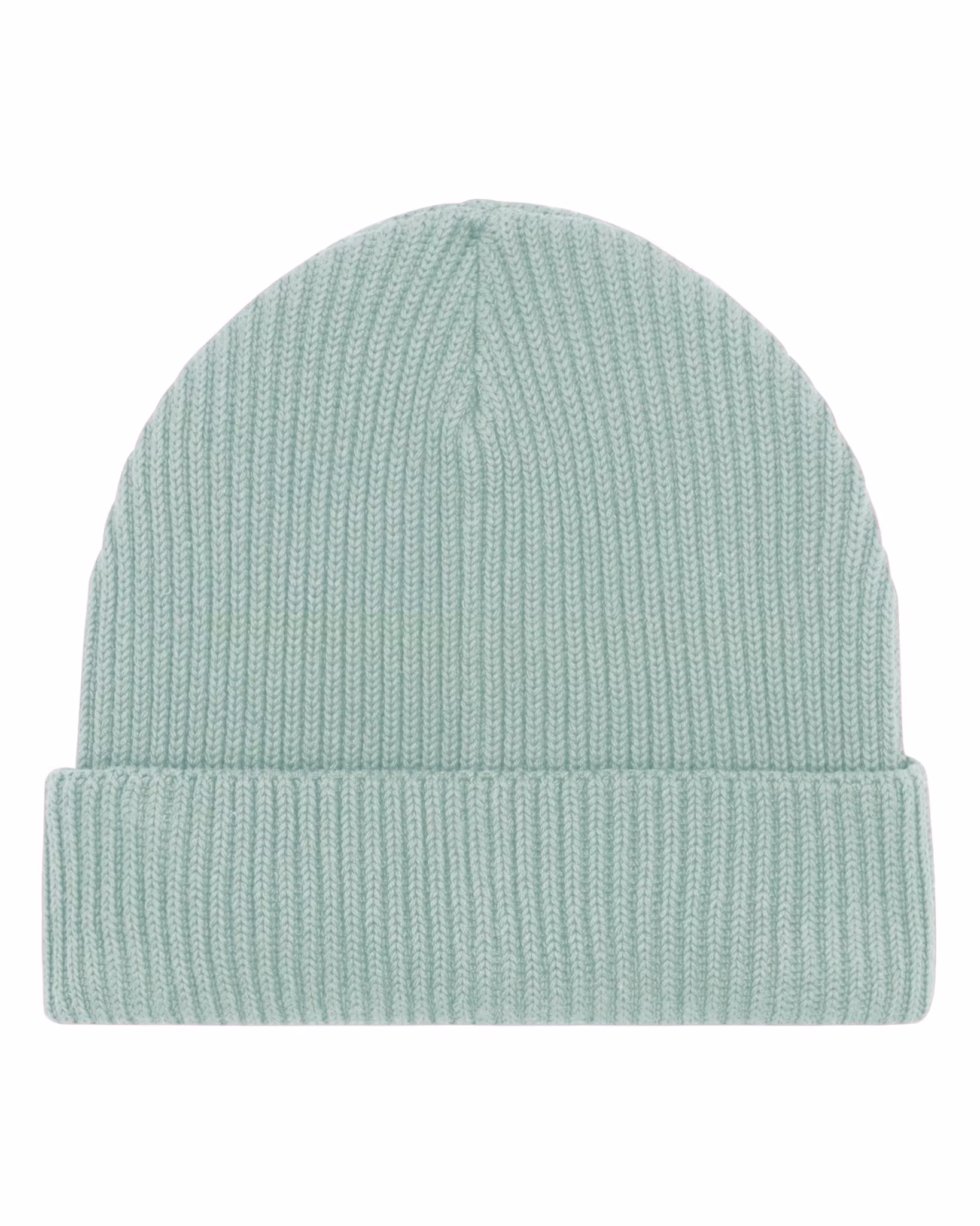 Stickad i klassisk fisherman-ribb med uppvikbar kant.