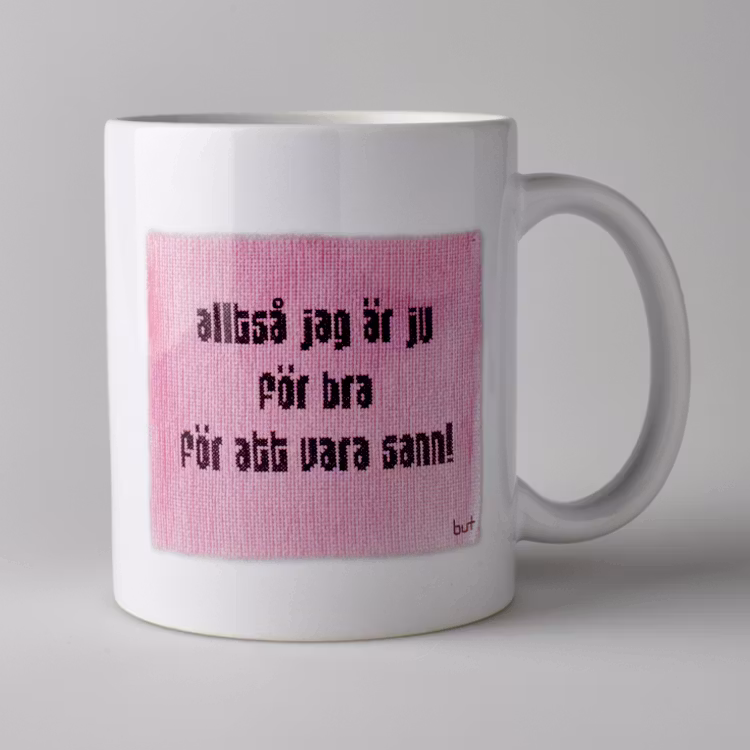 "alltså jag är ju för bra för att vara sann!" tryckt på båda sidor.