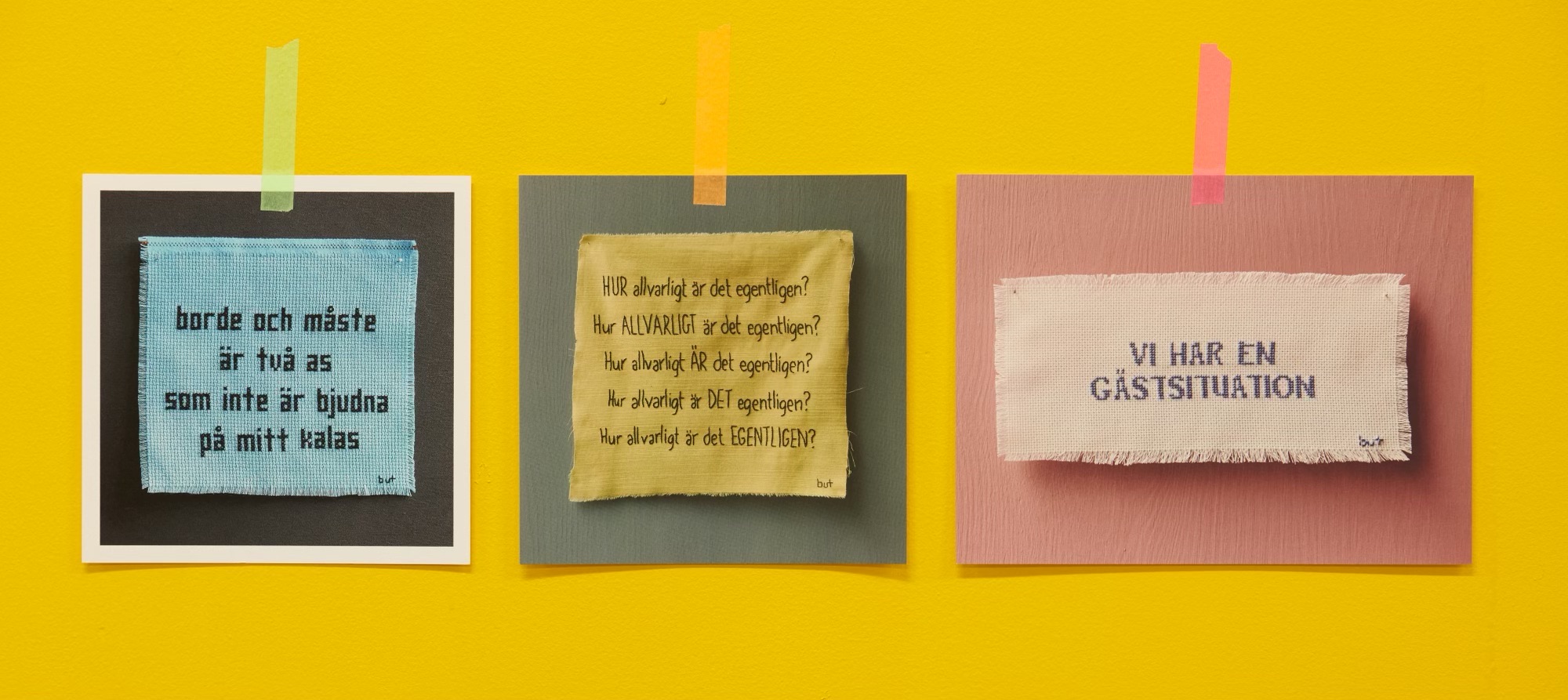 Det finns tre olika versioner av printar, (men varje text/broderi finns bara i ett av utförandena):