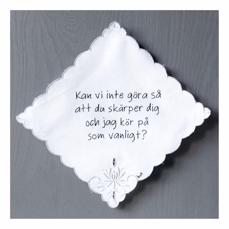 KAN VI INTE GÖRA SÅ ATT DU SKÄRPER DIG...18x18 vit kant