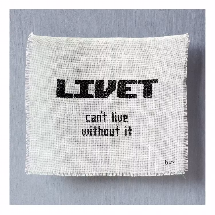 LIVET CAN'T LIVE WITHOUT IT 18x18 vit kant