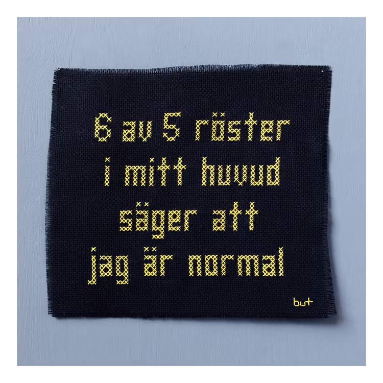 SEX AV FEM RÖSTER I MITT HUVUD...18x18 vit kant