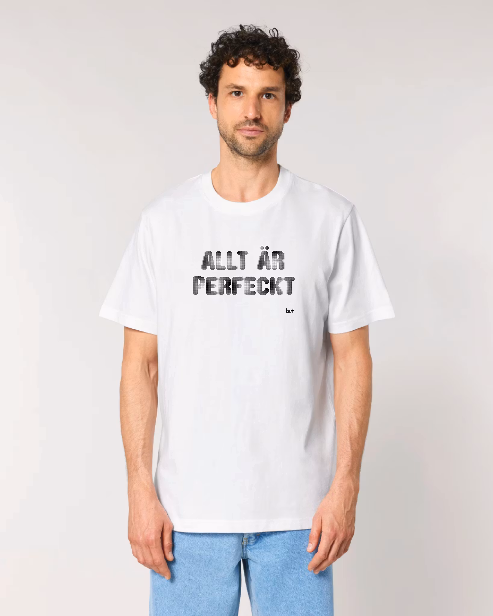 Text på tröjan: "ALLT ÄR PERFECKT".