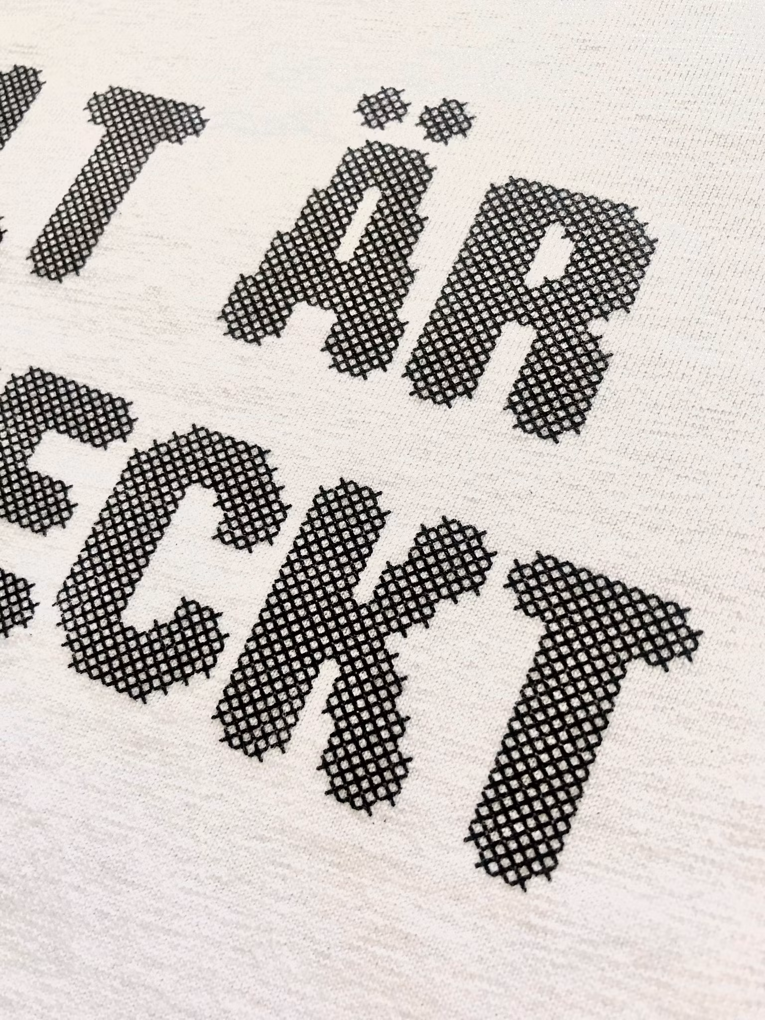 Texten är tryckt i ett mönster som ser ut som korsstygn, se produktbilder!