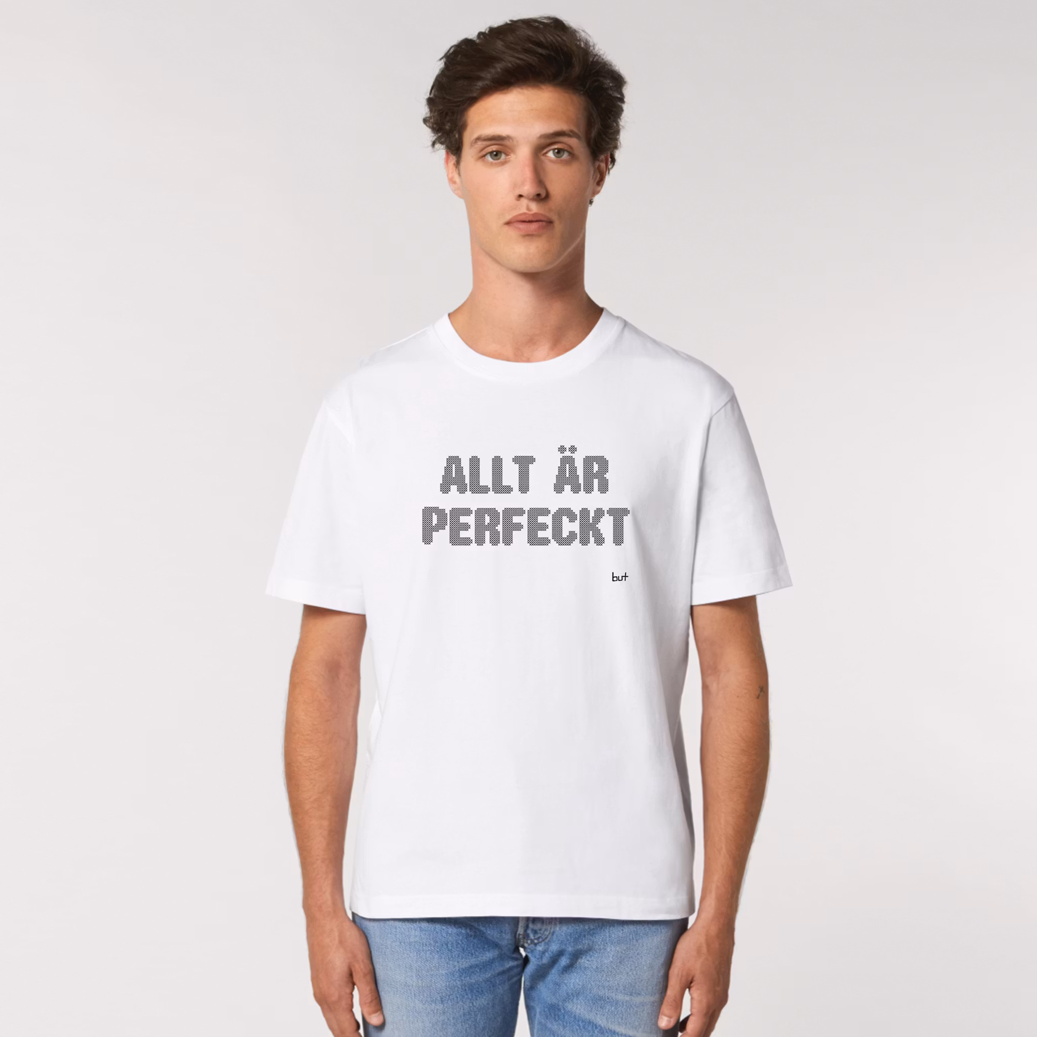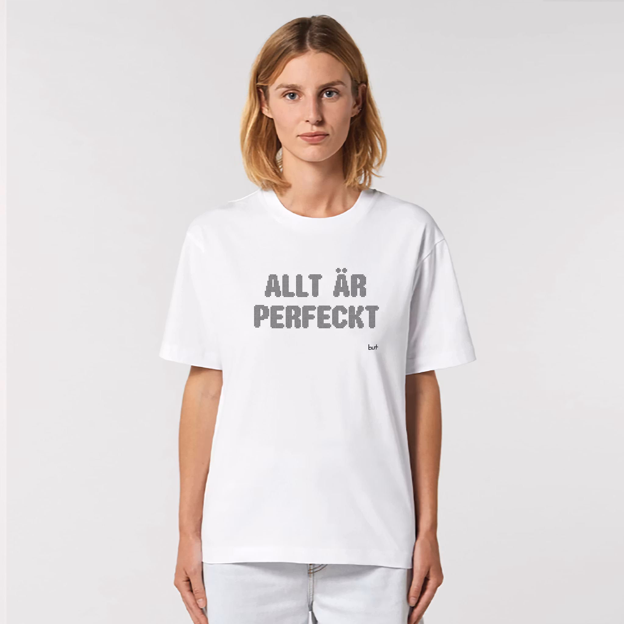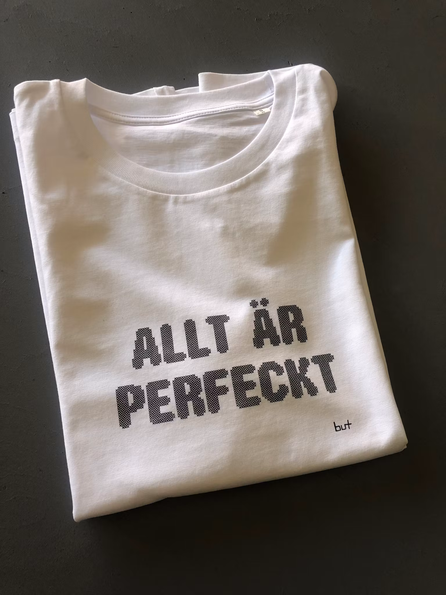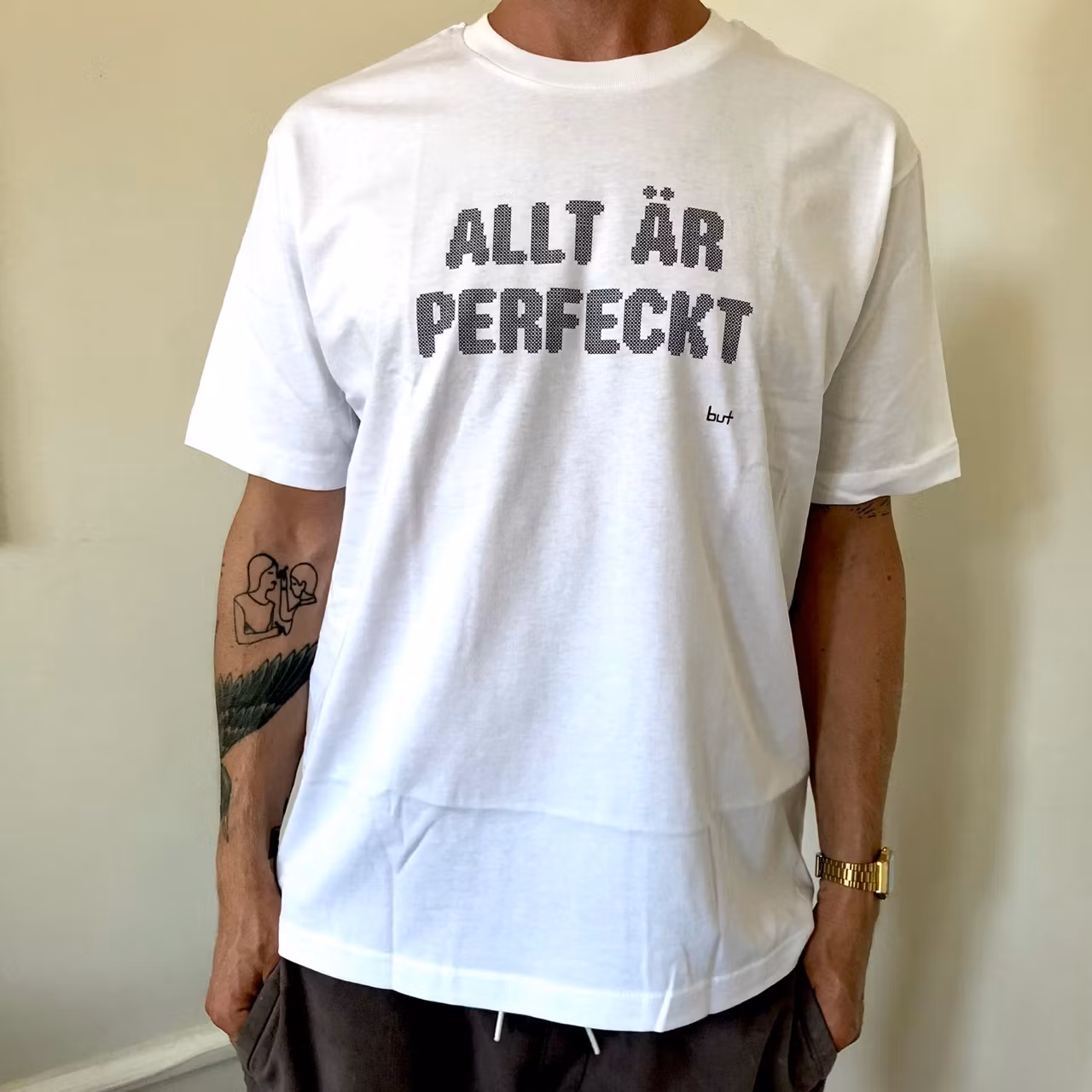 Text på tröjan: "ALLT ÄR PERFECKT".