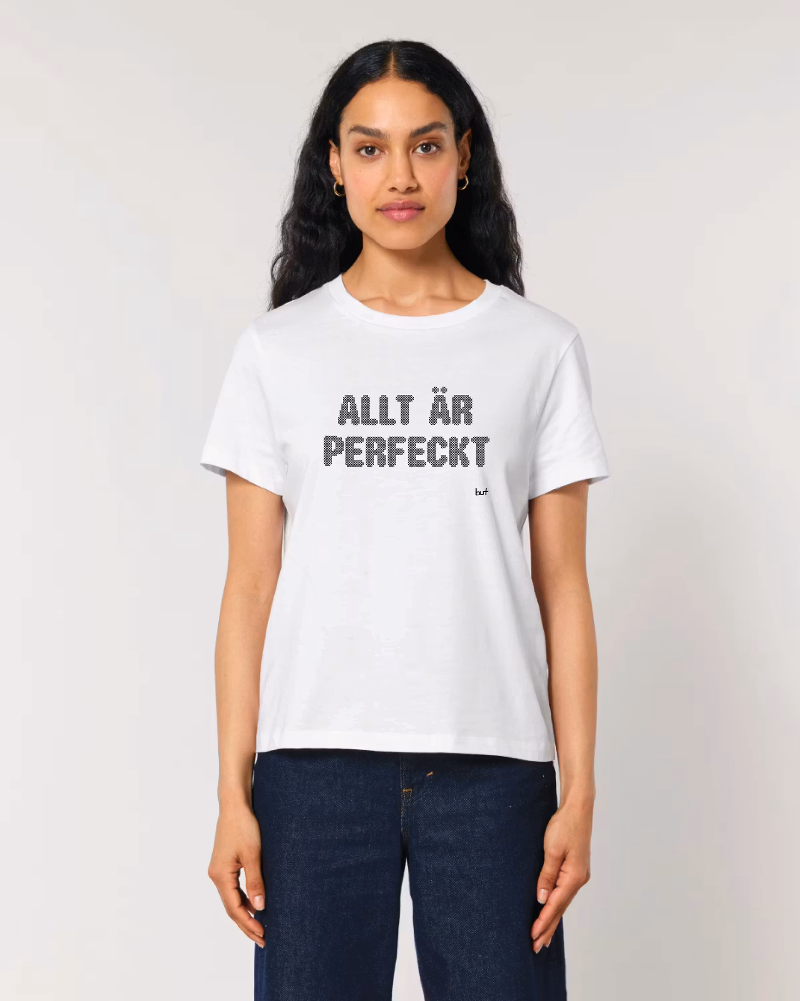 Text på tröjan: "ALLT ÄR PERFECKT"