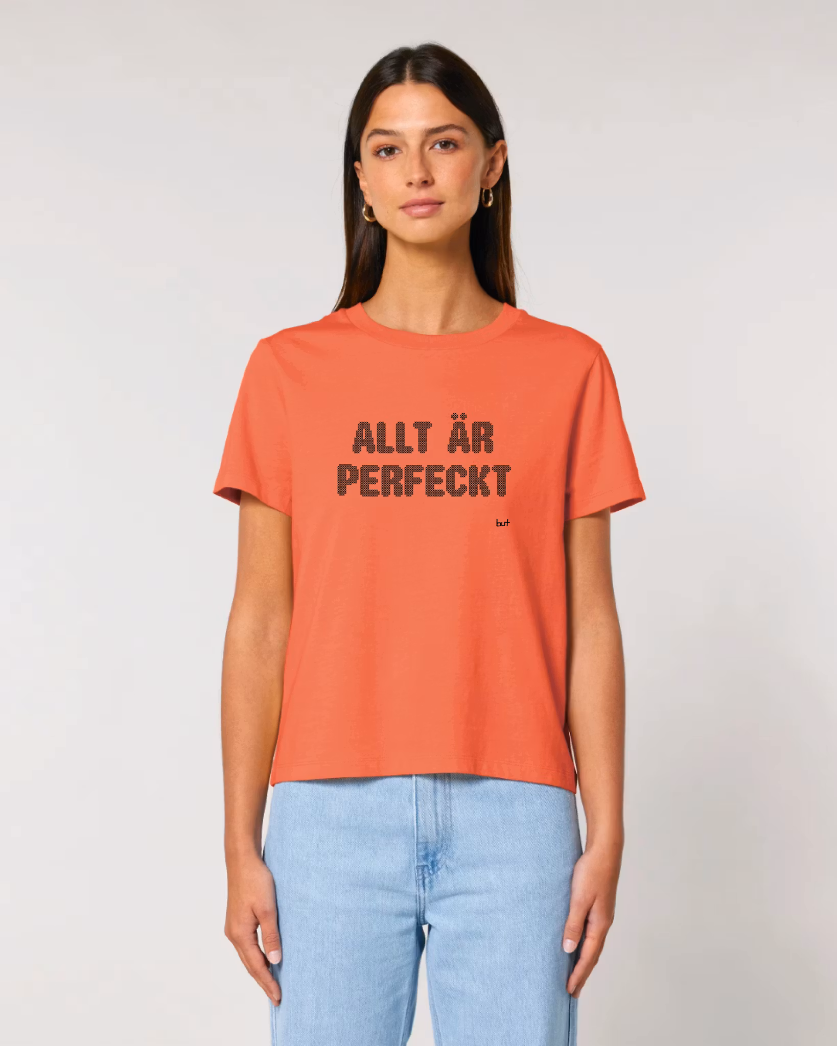Text på tröjan: "ALLT ÄR PERFECKT"