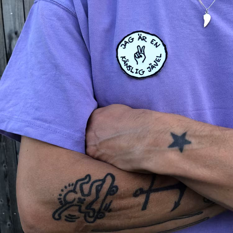 Märket placeras på plagget och pressas på med strykjärnet från plaggets sida. (Vid behov kan du stryka på på märkets sida men helst från tygets) Använd ett hårt underlag och ett rent torrt tyg så att motivet fäster bra. Max 150 grader (normalt två punkter i järnet). Tryck hårt med strykjärnet i 30 sekunder. Skydda känsligt material med t ex en kökshandduk.