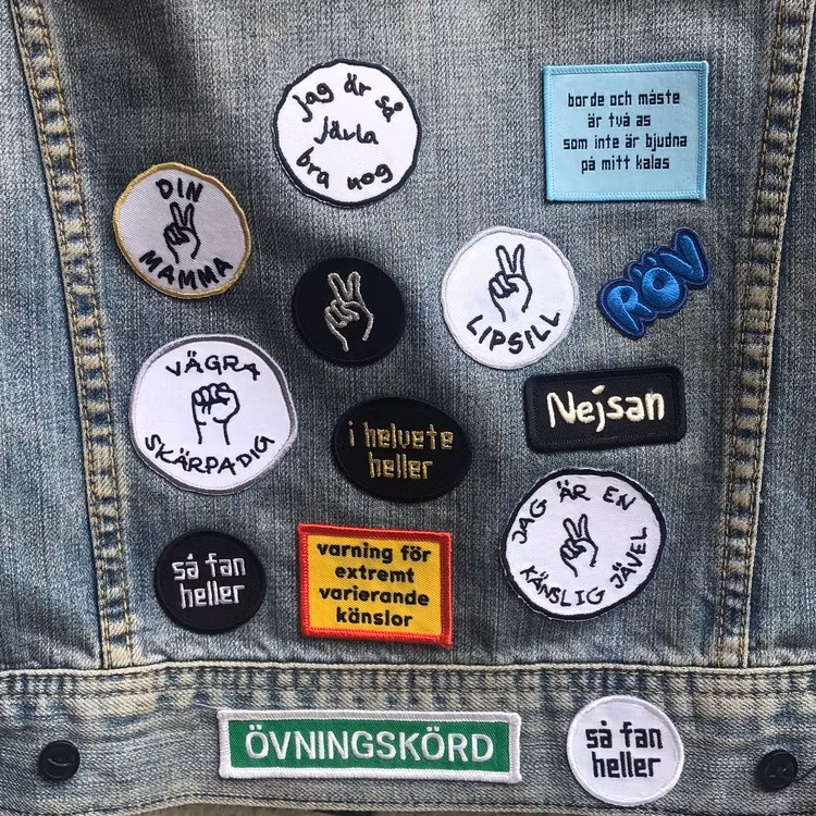 Märket placeras på plagget och pressas på med strykjärnet från plaggets sida. (Vid behov kan du stryka på på märkets sida men helst från tygets) Använd ett hårt underlag och ett rent torrt tyg så att motivet fäster bra. Max 150 grader (normalt två punkter i järnet). Tryck hårt med strykjärnet i 30 sekunder. Skydda känsligt material med t ex en kökshandduk.