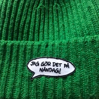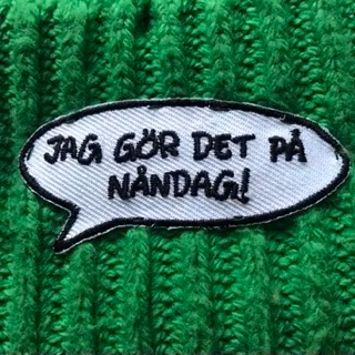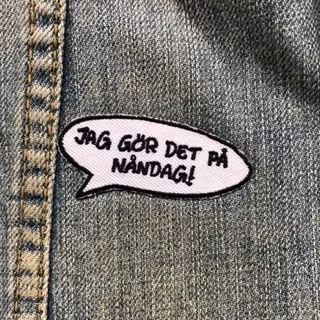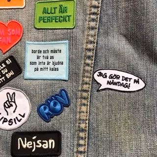 Märket placeras på plagget och pressas på med strykjärnet från plaggets sida. (Vid behov kan du stryka på på märkets sida men helst från tygets) Använd ett hårt underlag och ett rent torrt tyg så att motivet fäster bra. Max 150 grader (normalt två punkter i järnet). Tryck hårt med strykjärnet i 30 sekunder. Skydda känsligt material med t ex en kökshandduk.
