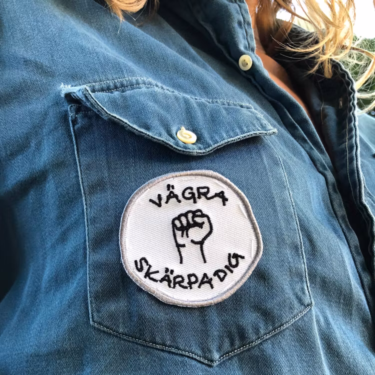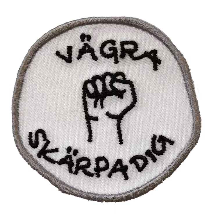 Märket placeras på plagget och pressas på med strykjärnet från plaggets sida. (Vid behov kan du stryka på på märkets sida men helst från tygets) Använd ett hårt underlag och ett rent torrt tyg så att motivet fäster bra. Max 150 grader (normalt två punkter i järnet). Tryck hårt med strykjärnet i 30 sekunder. Skydda känsligt material med t ex en kökshandduk.